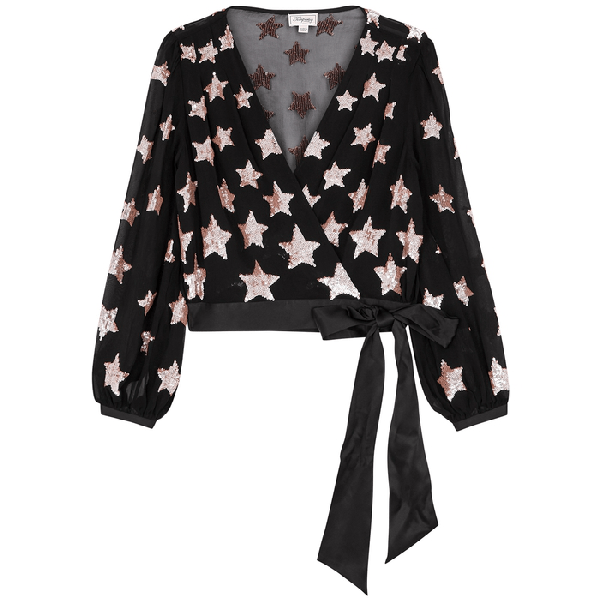 Temperley Starlet Sequinned Chiffon Wrap Top In Black ModeSens